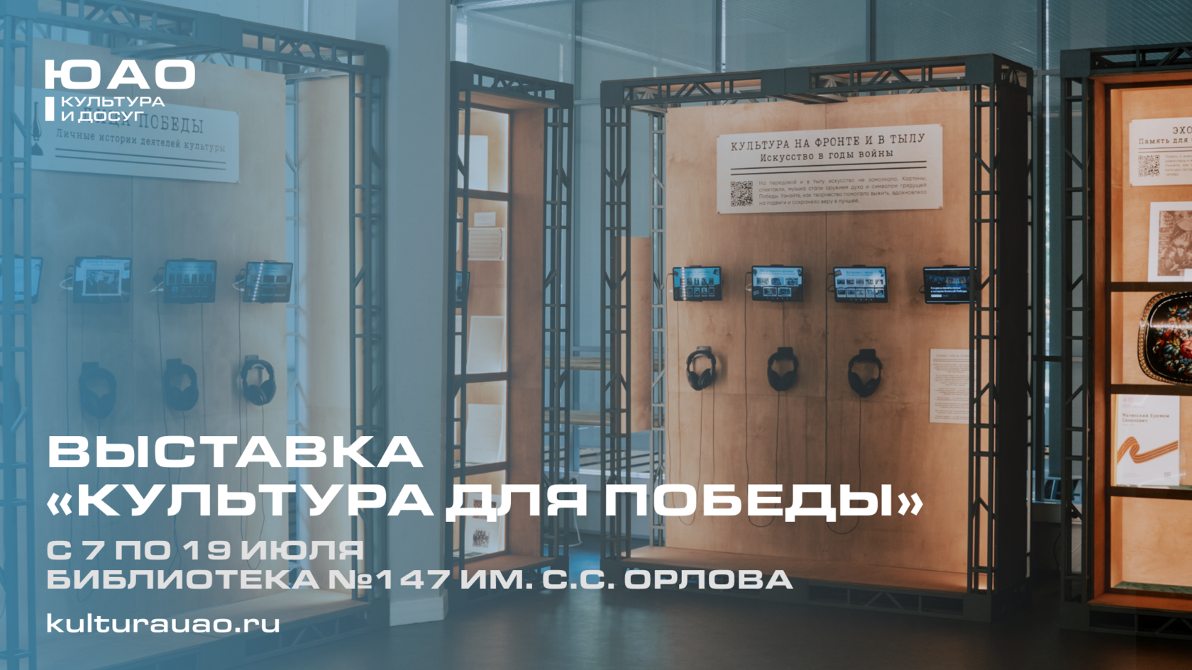В Библиотеке №147 имени С.С. Орлова состоялось торжественное открытие передвижной выставки «Культура для Победы». Она посвященная вкладу деятелей культуры и искусства в нашу Победу в Великой Отечественной войне.