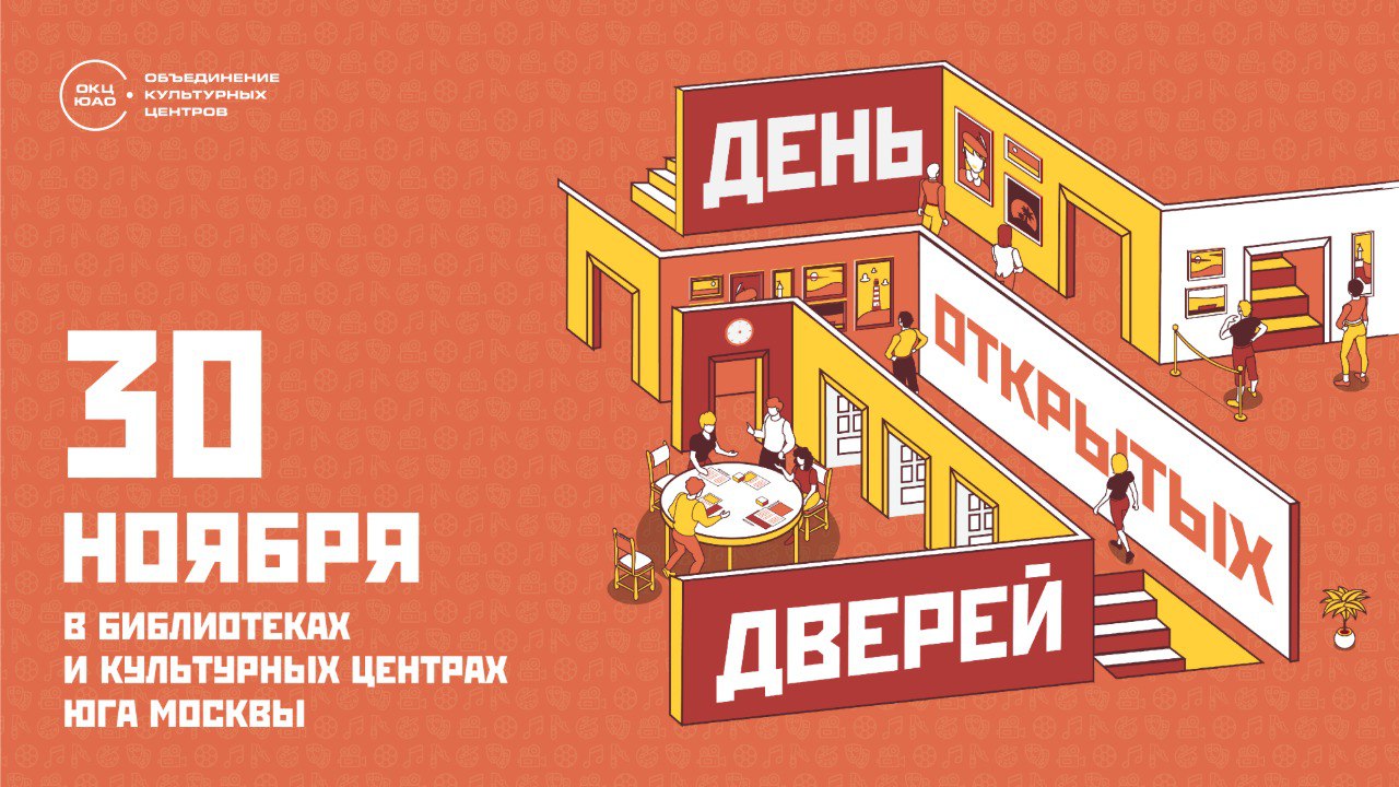 Новые знания и впечатления ждут вас уже завтра, ведь 30 ноября пройдёт День открытых дверей в библиотеках и культурных центрах Юга Москвы! Всей семьёй вы сможете принять участие в различных мастер-классах, послушать увлекательные лекции, пройдут открытые занятия наших кружков, клубов и секций, а также интересные викторины и игротеки.